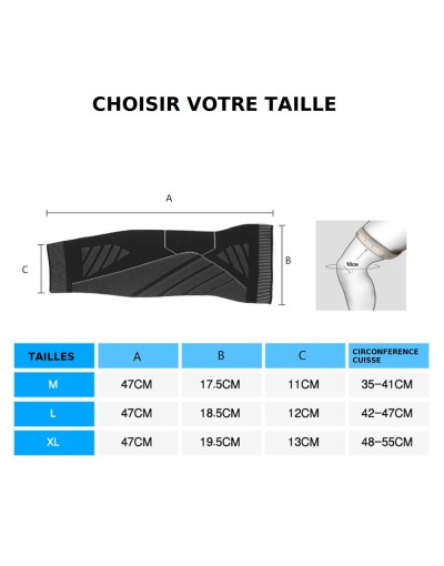 Cette jambière protège votre jambe, genou, cuisse et mollet. Tissu de haute qualité en nylon bien élastiqué qui s’adapte à toutes les morphologies pour la prévention et la réduction des blessures, recommandé par les professionnels.