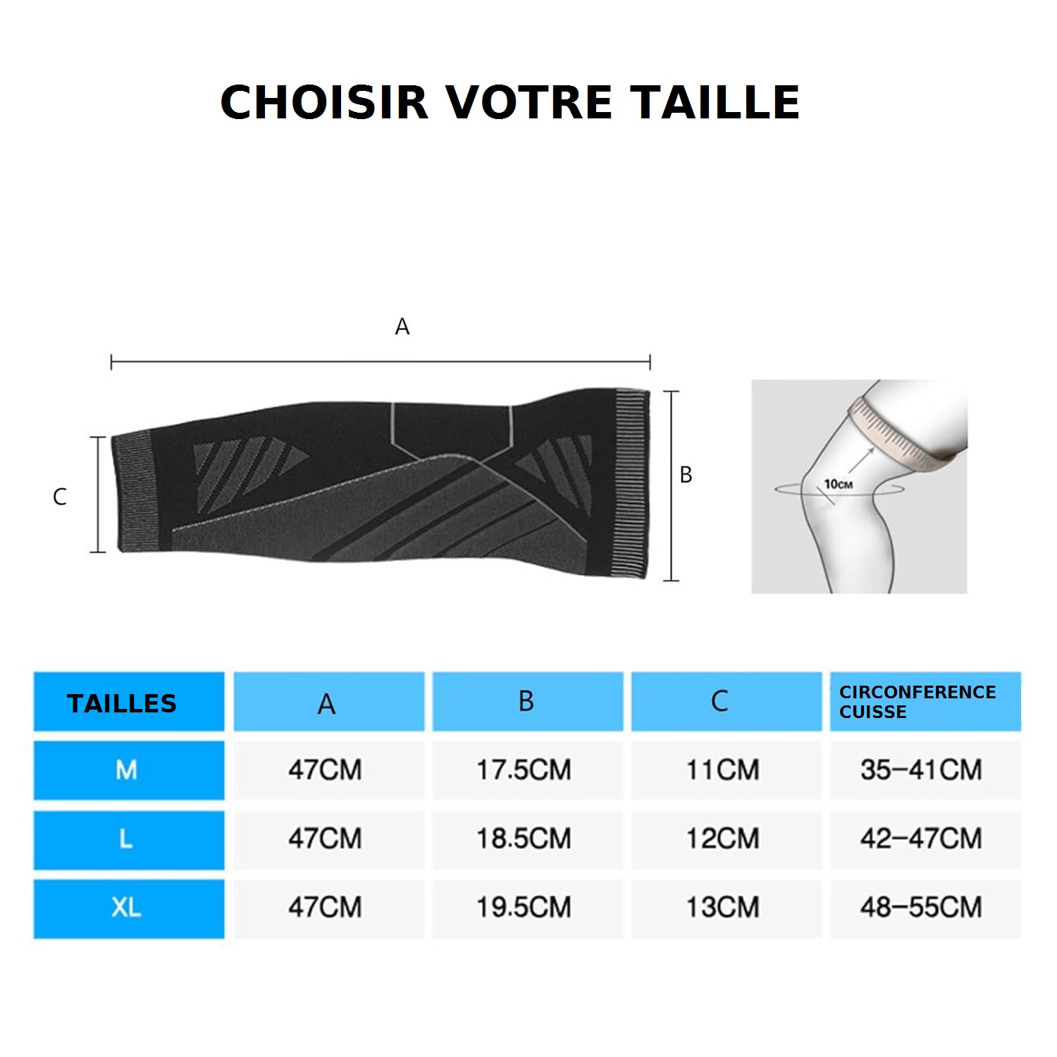 Genouillère longue fine - jambe, genou, cuisse, mollet - Jambière de compression - Manchon